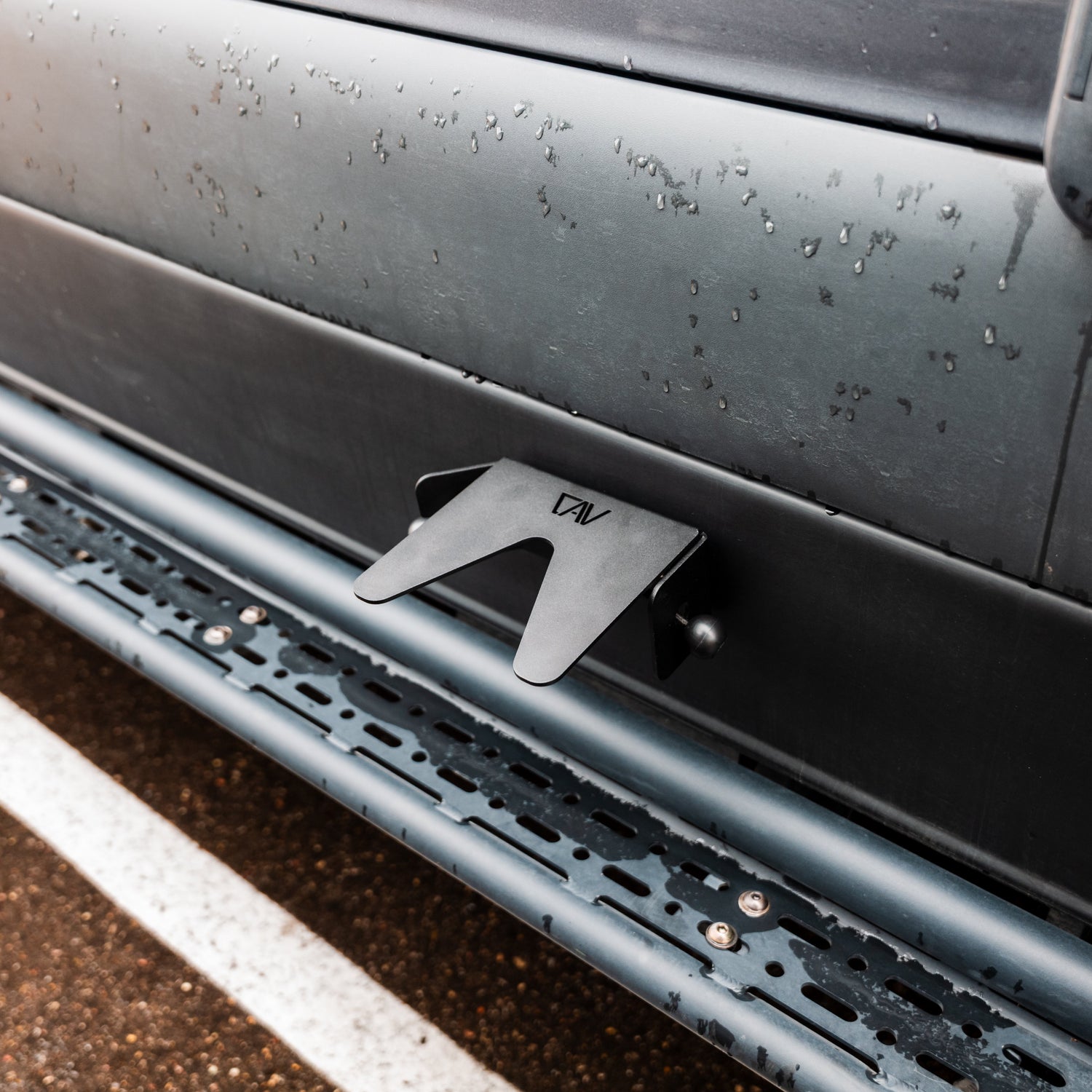 The CAV Magnetic Bike Stand mounts on the outside of your Sprinter van to hold a bike upright while you load, park, or set up camp. It’s portable so you can move and position it where you need, then remove and store it inside when you’re on the road.