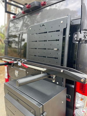 Note: Includes Upper BackPACK plate ONLY! Plate must mount to a Gen 2 Aluminess Ram ProMaster rear door base unit rack: Aluminess 2013+ Promaster Passenger Side Box and BackPACK Carrier