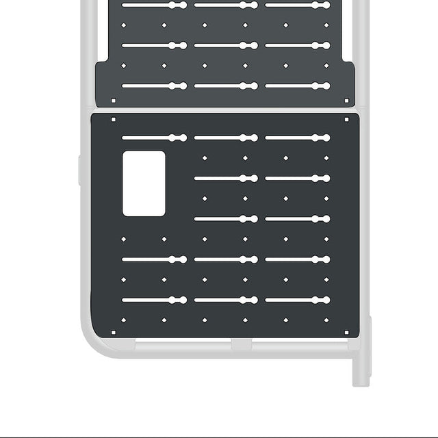 Maximize your Aluminess 2013+ Promaster Passenger Side Box and BackPACK Carrier with the Aluminess 2013+ Promaster BackPACK Lower Plate. Aluminess's FrontLOADER pattern allows you to easily mount most accessories without awkwardly reaching behind the plate to hold a bolt or fastener.