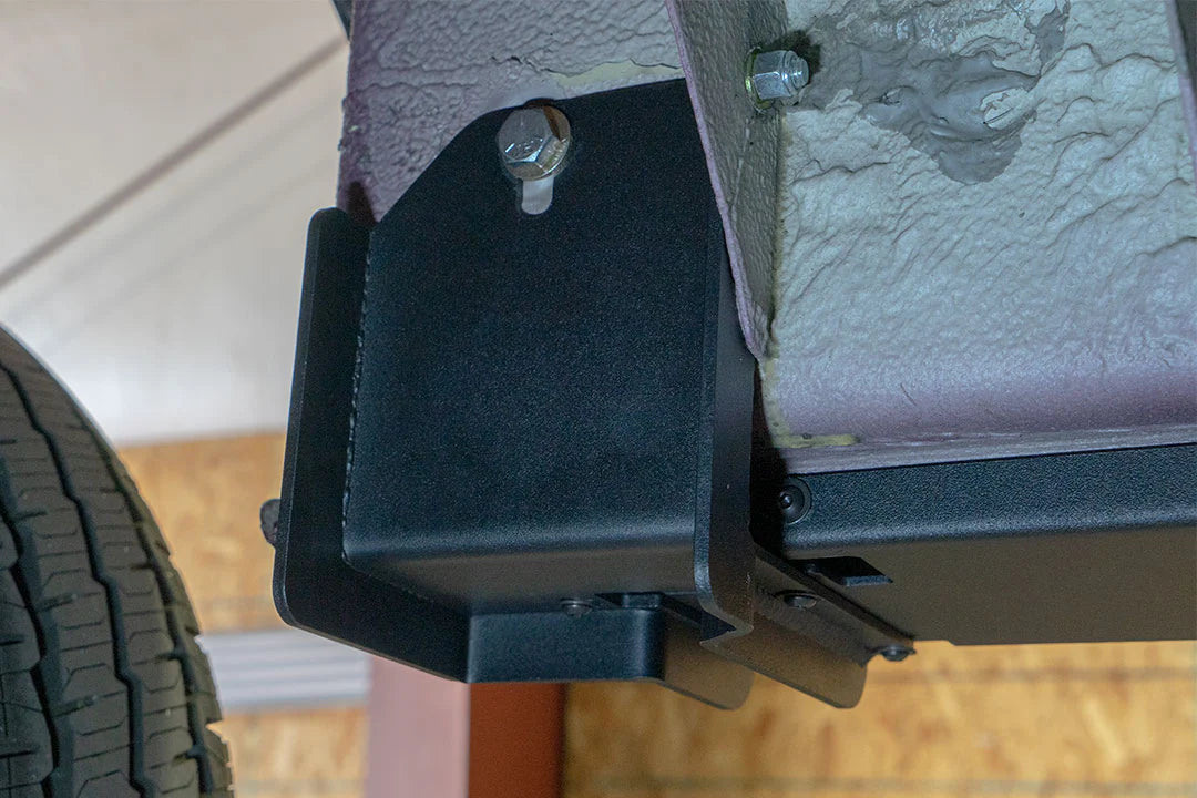 The main step surfaces are constructed from 1/8" steel and attach to the pinch seam with stainless steel hardware. Frame mounts are constructed from 3/16" steel and are attached in three locations directly to the vehicle's chassis. This additional reinforcement not only ensures a safe and solid mounting location, but increases torsional rigidity in the chassis of the vehicle. Drilling of holes at the pinch seam and under body gussets are required for installation.