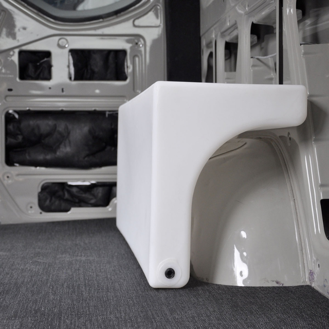 Northwest Conversions innovative 20-gallon wheel well water tank is thoughtfully designed to transform unused space into a valuable resource within your vehicle. Crafted to seamlessly fit the Sprinter 2500, as well as Sprinter T1N and Transit single rear wheel vans, the SP-L-20 tank boasts versatility that extends beyond these models.