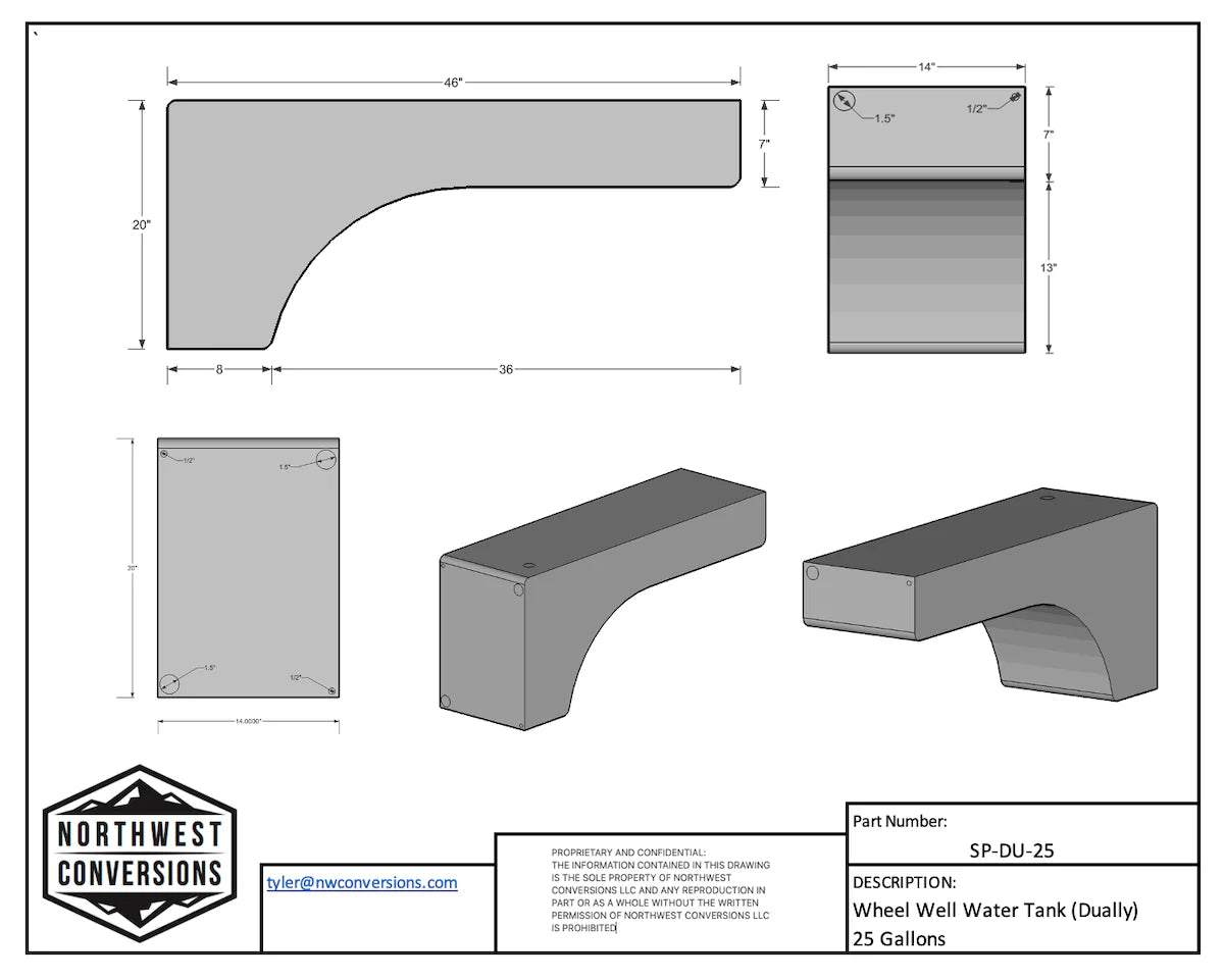 Key Features: Northwest Conversions 25 Gallon Dually Wheel Well Water Tank