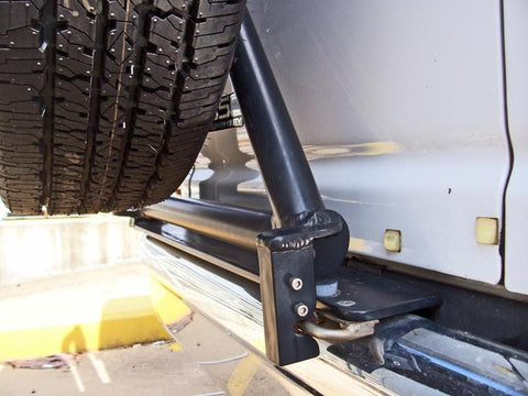 Note: This tire rack will not fit with vehicles that have a body lift, but options are available so reach out to us before ordering. This tire rack is set up for wheel/tire combos with 5.75" backspacing (including tire bulge). Maximum tire size is 35″. Please allow 6-8 weeks before shipping.