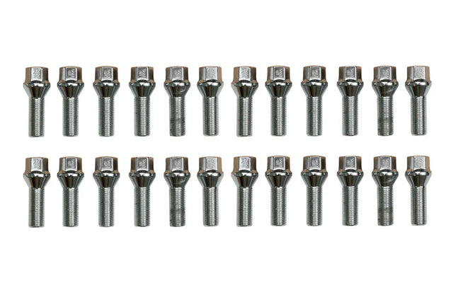 - Factory-style lug bolts designed for aftermarket wheels with 60° tapered lug seats